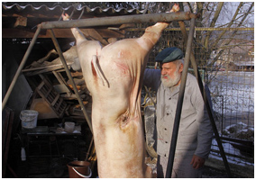 Kořen nás pozval na zabijačku na Lipno. Postupně